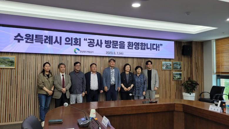 [수원시 세계타임즈=송민수 기자] 수원특례시의회 의원연구단체인 ‘ESG생태계 구축을 통한 수원시 혁신방안 연구회(대표 박현수 의원)’는 6. 7(수)일 경북 예천군에 위치한 경상북도 개발공사를 방문했다.