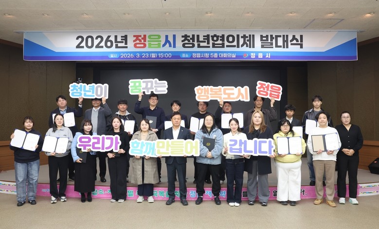이학수 시장은 격려사를 통해 “청년이 겪는 문제는 당사자인 청년이 가장 정확하게 파악하고 있다”며 “정읍시는 청년협의체가 제안하는 참신하고 실질적인 아이디어들이 정읍시의 미래를 밝히는 핵심 동력으로 자리 잡을 수 있도록 행정적 지원을 아끼지 않겠다”고 말했다.