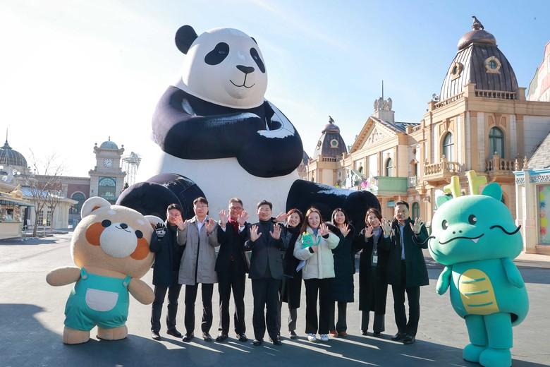 | ▲ 에버랜드 관계자들과 용인시 관계자들이 기념촬영을 하고 있는 모습. |