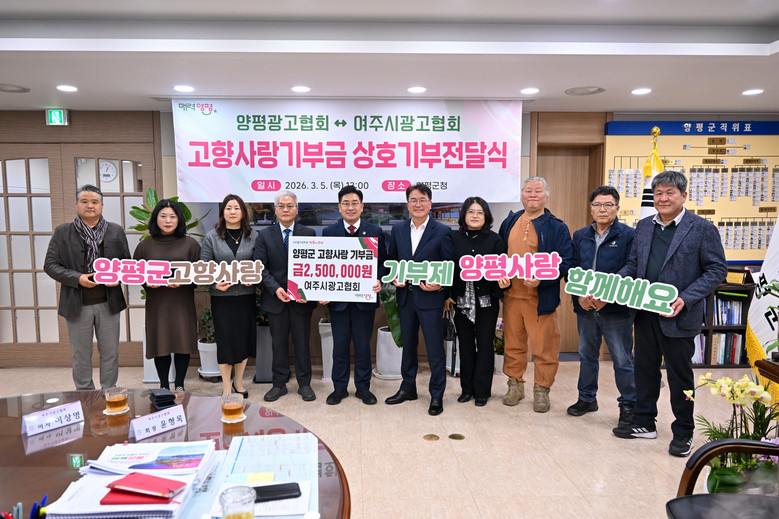 한편 양평군은 2024년부터 여주시 단체들과 고향사랑기부금 상호기부를 이어오고 있으며, 이번 기부를 포함해 총 5차례에 걸쳐 3,316만 원의 상호 기부가 이루어졌다.