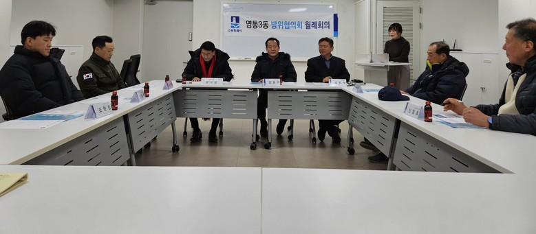 [수원시 세계타임즈=송민수 기자] 수원특례시 영통구 영통3동(동장 김인태)는 지난 29일 행정복지센터 2층 회의실에서 ‘영통3동 방위협의회 새해 첫 정기회의’를 개최했다.