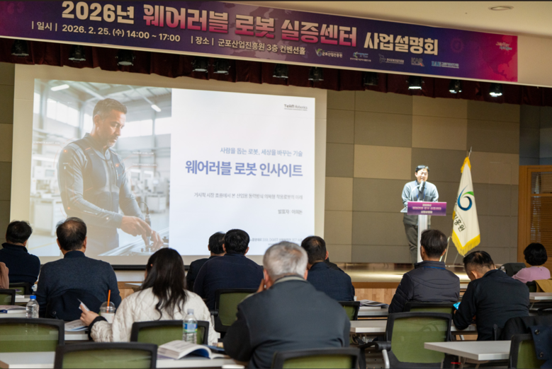 유병직 군포산업진흥원장은 “구축 중인 웨어러블 로봇 실증센터는 향후 기업들이 겪는 기술적 장벽을 해소하는 ’시험평가인증 통합 지원‘의 거점이 될 것”이라며 “이번 설명회를 통해 군포시가 웨어러블 로봇 산업의 표준을 제시하는 중심 도시로 거듭나길 기대한다”고 밝혔다.