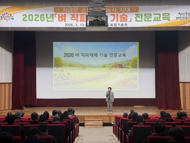 이와 관련 도 농업기술원은 이날 기술원 대강당에서 ‘벼 직파 재배기술’ 확산을 위한 전문교육을 실시했다.
