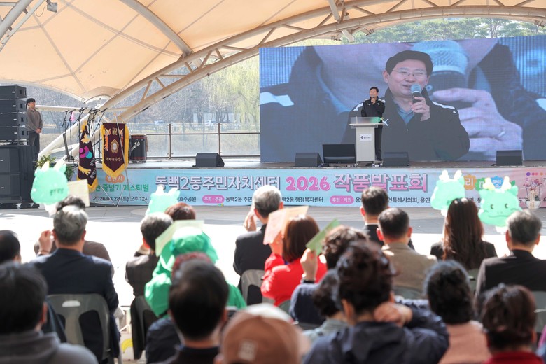 [용인시 세계타임즈=송민수 기자] 이상일 용인특례시장은 28일 동백호수공원에서 ‘2026 제5회 동백2동 주민자치 작품발표회’를 찾아 행사 개최를 축하하고, 주민들을 격려했다.