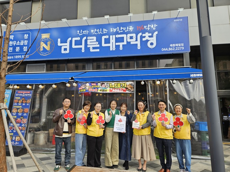 이날 ‘제이잉글리쉬어학원’, ‘남다른대구막창 세종해밀점’, ‘옥된장 세종해밀점’은 해밀동 착한가게 13호, 14호, 15호점으로 가입하고, 매월 일정금액을 기부해 어려운 이웃을 위한 나눔에 동참하기로 했다.