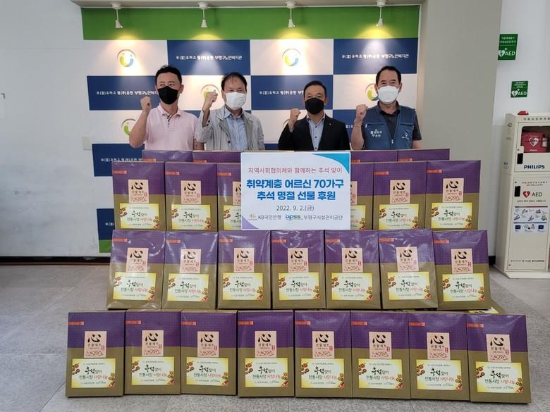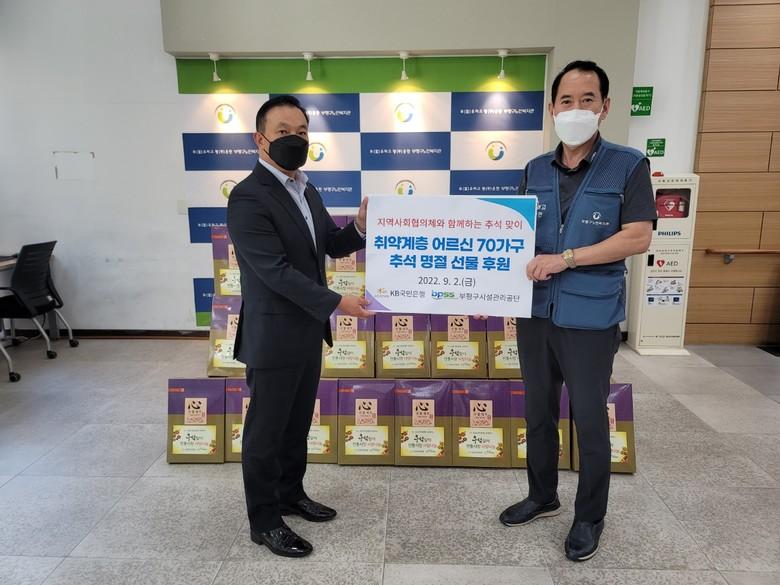 국민은행 인천삼산지점 윤상원 지점장은 “추석을 맞아 부평구 지역의 어르신을 대상으로 후원물품을 전달하게 되어 뜻깊게 생각한다며 앞으로도 국민의 어려움을 도와주고 해결하는 은행이 되도록 노력하겠다. 는 소감이다.