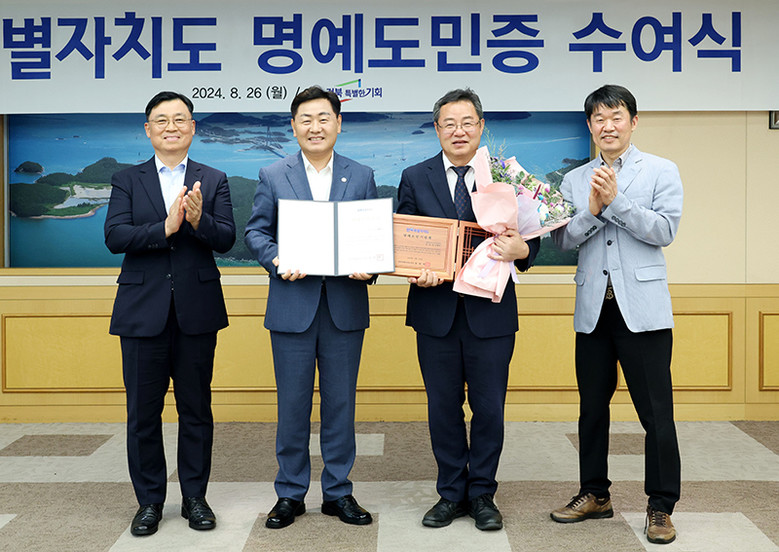 [전북특별자치도=세계타임즈 이상호 기자] 전북특별자치도는 26일 도청 회의실에서 김관영 도지사가 김진상 전 KIST 전북분원장에게 명예도민증을 수여했다고 밝혔다.