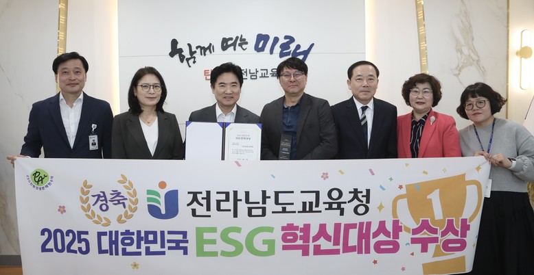[전남 세계타임즈=우덕현 기자] 전라남도교육청이 지난 18일 서울 대한상공회의소에서 열린 ‘2025 대한민국 ESG경제대상’ 시상식에서 공공기관 부문 ‘ESG 혁신 대상’을 수상했다.