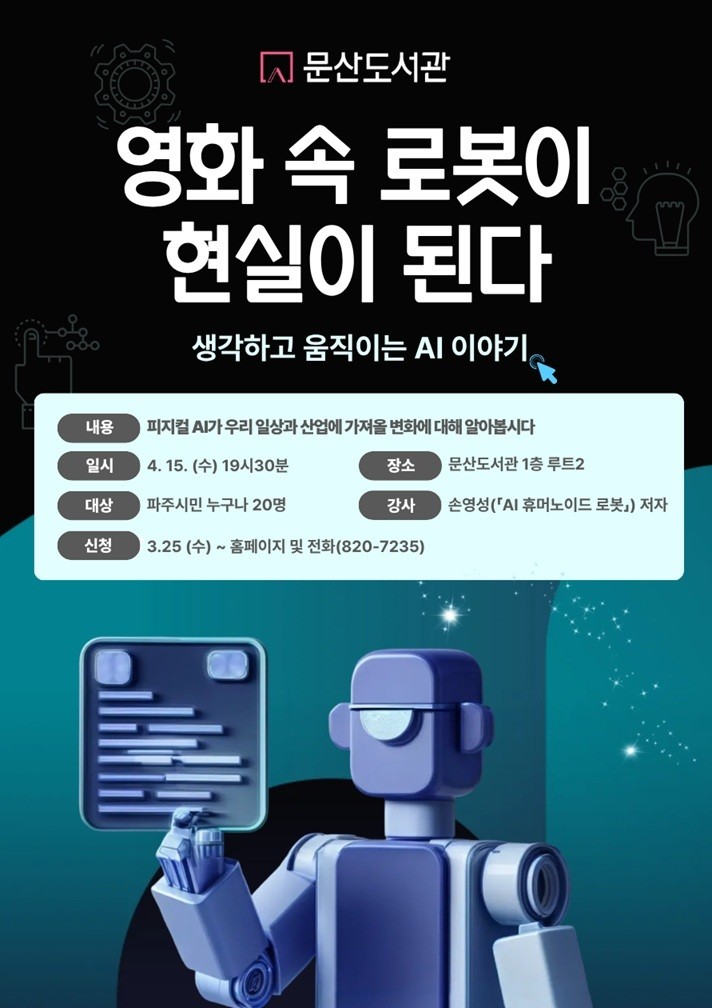 이인숙 문산도서관장은 “빠르게 발전하는 과학기술을 시민들이 쉽게 이해할 수 있도록 돕는 자리”라 말하며, “미래 사회 변화에 관심 있는 시민들에게 의미 있는 시간이 될 것”이라고 전했다.