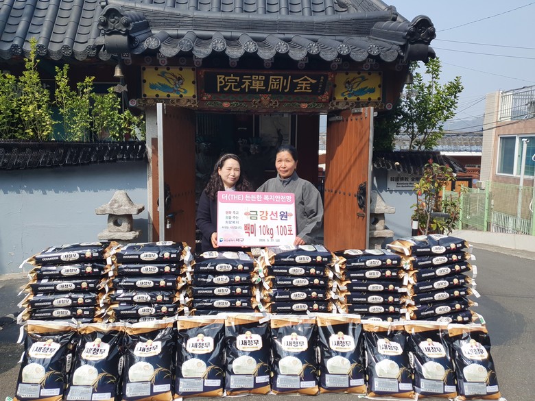 이번 성품은 금강선원이 지역사회 어려운 이웃을 위해 격월로 꾸준히 이어오고 있는 나눔 활동의 일환으로, 이날 전달된 백미는 관내 취약계층 100가구에 소중히 전달될 예정이다.