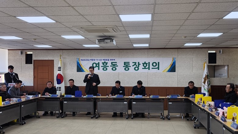 [여주시 세계타임즈=송민수 기자] 여주시 여흥동(동장 김영완)은 8일 오전, 행정복지센터 2층 회의실에서 2026년 새해를 맞이하며 첫 통장회의를 개최했다. 회의에는 김영완 여흥동장, 박두형 여주시의회 의장, 서광범 도의원, 이병길 여주농협조합장 및 33개 마을 통장이 참석했다.