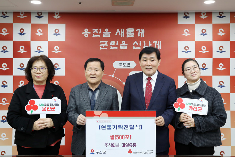 한편, 폭넓은 사회공헌 활동을 전개하며 지역사회와의 상생을 실천하고 있는 ㈜대일유통은 식자재 유통 전문업체로, 옹진군에 매년 백미 500포 ~ 1,000포씩 꾸준하게 기부하며 따뜻한 나눔을 이어가고 있다.