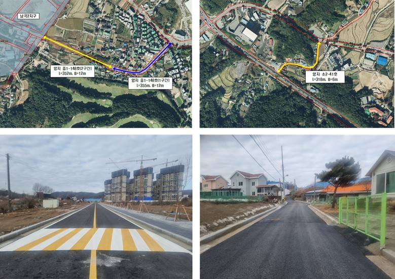소2-41호 도로 318m 구간은 자연취락지구로 기존 도로 폭이 4m 이하에 불과해 거주민들이 통행에 불편을 겪던 곳으로, 사업비 19억원을 투입해 6m로 확장했다.