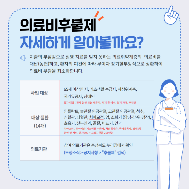 [충북 세계타임즈=이현진 기자] 충북도는 전국 최초의 선순환적 의료복지제도인 ’충청북도 의료비후불제‘ 사업의 신청자가 700명을 돌파 했다고 밝혔다.