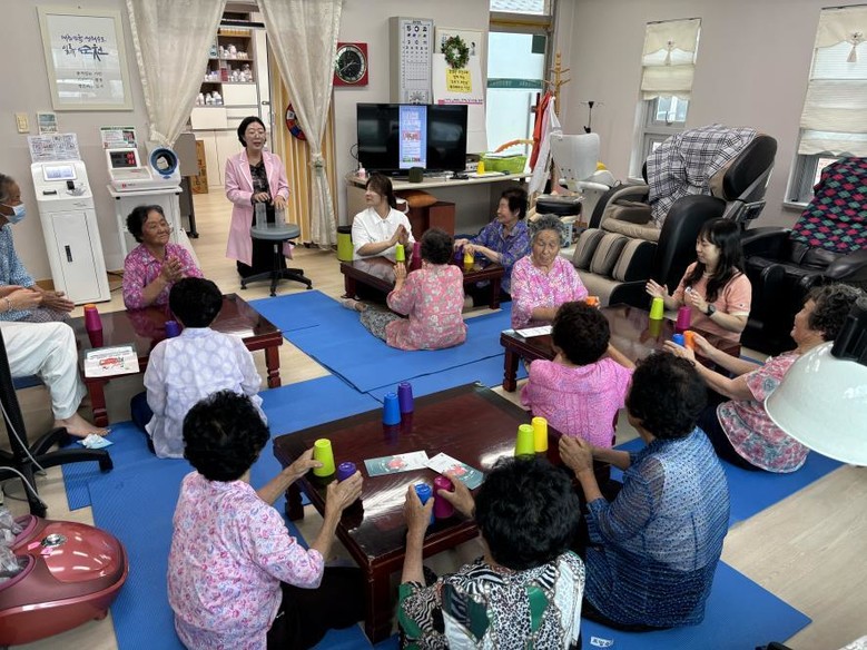 | ▲ 지역 어르신들이 순천시 망룡보건진료소에서 치매 예방 교육 등 다양한 건강증진 프로그램에 참여하고 있다 |