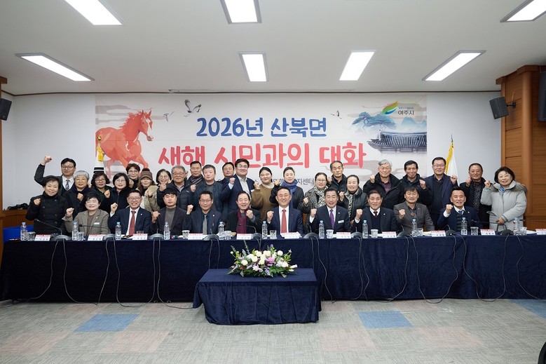 [여주시 세계타임즈=송민수 기자] 여주시(시장 이충우)는 지난 21일, 2026년 새해를 맞아 산북면에서 이충우 여주시장을 비롯해 박두형 여주시의회 의장, 김규창 경기도의회 부의장, 시‧도의원, 산북면 기관‧단체장과 지역 주민 등 100여 명이 참석한 가운데 ‘시민과의 대화’를 개최했다.