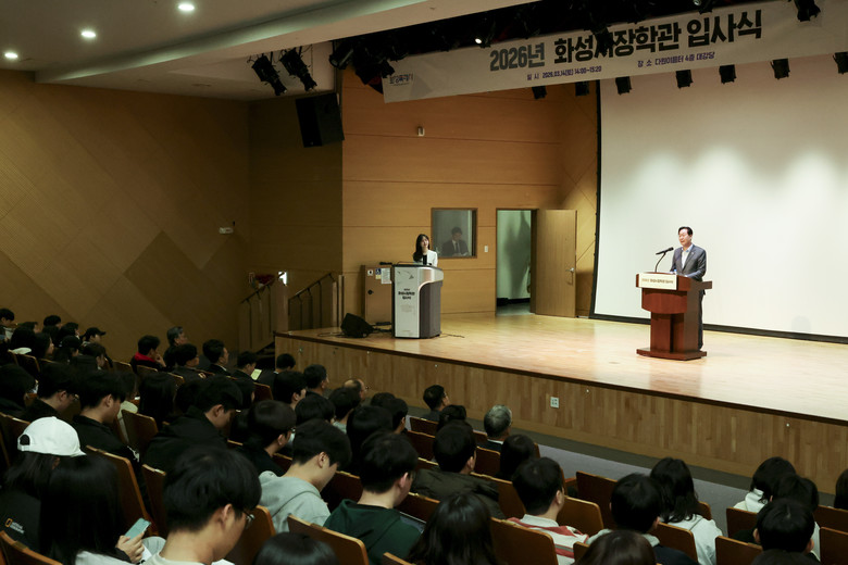 [화성시 세계타임즈=송민수 기자] 화성특례시(시장 정명근)가 14일 동탄다원이음터에서 ‘2026년 화성시 장학관 입사식’을 개최했다. 이번 행사는 화성시장학관 신규 입사생들의 새로운 출발을 축하하고 장학관 운영과 지원 프로그램을 소개하기 위해 마련됐다.