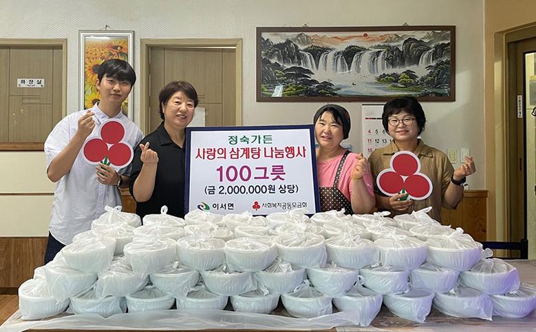 6일 정숙가든이 후원한 삼계탕은 약 200만원 상당으로 이서면 맞춤형복지팀과 생활지원사들이 저소득 홀몸 어르신과 홀몸 중장년층을 직접 방문해 전달했다.