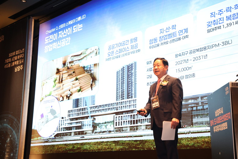[남양주시 세계타임즈=송민수 기자] 남양주시는 25일 서울 서초구 엘타워에서 ‘남양주시 기업 투자유치설명회’를 개최해 왕숙 도시첨단산업단지(이하 왕숙 도첨산단)를 중심으로 한 투자환경과 산업 경쟁력을 소개했다.