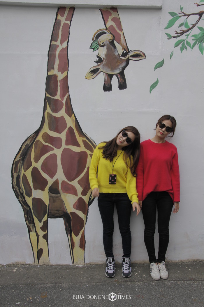 파란 바다의 골목은 '바다표범', '펭귄부부', '망치상어를 잡다' 등 개성 있는 벽화로 꾸며졌고, 푸른 녹색의 골목 또한 '외톨이 기린', '물주는 소녀', '어린왕자' 등 다양한 소재의 벽화들로 구성됐다.