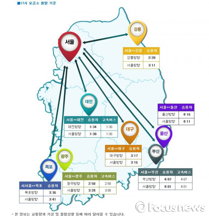 또 서울과 수도권에서 차량 32만대가 빠져나가고 34만대가 들어올 것으로 예상됐다.